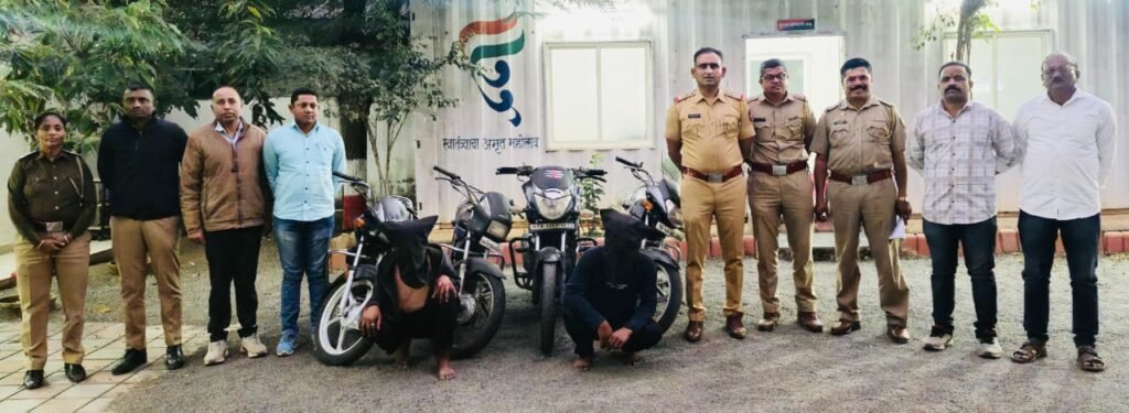 सांगली :- मिरजेत महात्मा गांधी चौक पोलिसांनी दुचाकी चोरी करणाऱ्या दोघांना अटक करून दुचाकी चोरीचे तीन गुन्हे उघडकीस आणले आहेत पोलिसांनी आरोपींकडून 2 लाख 40 हजार रुपये किंमतीच्या चार दुचाकी हस्तगत करण्यात आल्या आहेत. मिरज शहरांतील महात्मा गांधी चौक पोलीस ठाण्याचे सहाय्यक पोलीस निरीक्षक संदीप शिंदे यांना दोन संशयित चोरीची दुचाकी विक्रीसाठी मिरज कोल्हापूर रोडवर राजपूत मंगल कार्यालयाजवळ पुलाखाली येणार असल्याची माहिती मिळाली होती. त्या अनुषंगाने पोलीस पथकांने तेथे सापळा रचून विनानंबर प्लेट दुचाकी थांबलेल्या आयुब अब्दुलरशीद मन्ना (वय 34) व संदीप सूर्यकांत येलूरकर (वय 38) रा. नम्रता कॉलनी बुधगांव तालुका मिरज) या दोघांना ताब्यात घेतले आहे. तासात त्यांनी दिनांक 8 रोजी मिरजेत एका हॉस्पिटलच्या गेट समोरून दुचाकी चोरीची कबुली दिली आहे. पोलीस चौकशीत मिरज शहर मिरज ग्रामीण हद्द व कर्नाटकातील सदलगा परिसरांतून त्यांनी आणखीन तीन दुचाकी चोरल्याचे निष्पन्न झाले आहे. या प्रकरणाचा पुढील तपास सुरज पाटील करीत आहेत. सदरची कामगिरी जिल्हा पोलीस अधीक्षक संदीप घुगे साहेब अप्पर पोलीस अधीक्षक कल्पना बारवकर मॅडम उपविभागीय पोलीस अधिकारी प्रणिल गिल्डा साहेब यांच्या मार्गदर्शनाखाली महात्मा गांधी चौक पोलीस ठाण्याचे स.पो.नि. संदीप शिंदे साहेब पोलीस उपनिरीक्षक सुरज गुरव सचिन कुंभार सुरज पाटील बसवराज कुंदगोळ मोहसिन टिनमेकर विनोद चव्हाण राजेंद्र हारगे चालक सतीशकुमार पाटील आदीं पोलिसांनी या कारवाई सहभाग घेतला.*