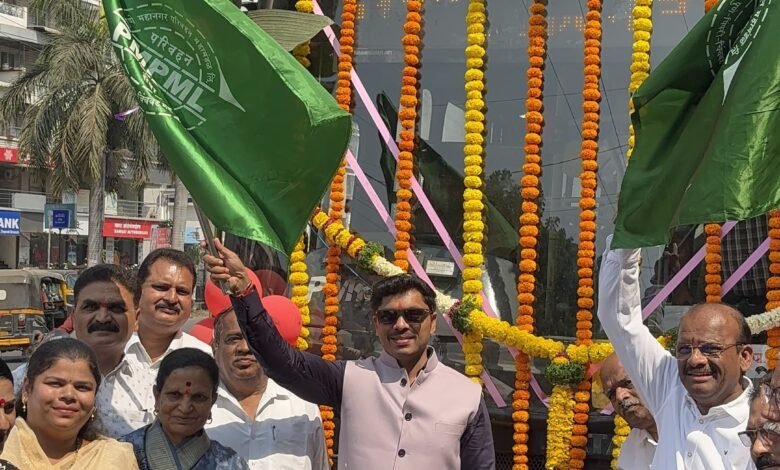 पिंपरी, दि. २७ मार्च २०२६ :* पिंपरी चिंचवड महानगरपालिकेच्या वतीने दापोडी येथील क्र. ११ मंत्री निकेतन बस स्टॉप येथून मार्केट यार्डपर्यंत नागरिकांच्या सोयीसाठी नव्याने सुरू करण्यात आलेल्या पीएमपीएमएल बससेवेचे उद्घाटन महापौर रवि लांडगे यांच्या हस्ते हिरवा झेंडा दाखवून करण्यात आले.